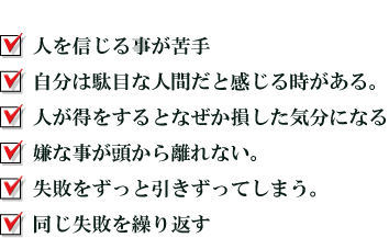 ですので、この中の1つでもチェックがついた方は少なくとも、マイナス思考であるために、今までいくらか損をしているでしょう。